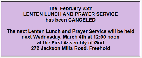 Please join the Greater Freehold Clergy as we pray, learn and eat together every Wednesday during Lent.